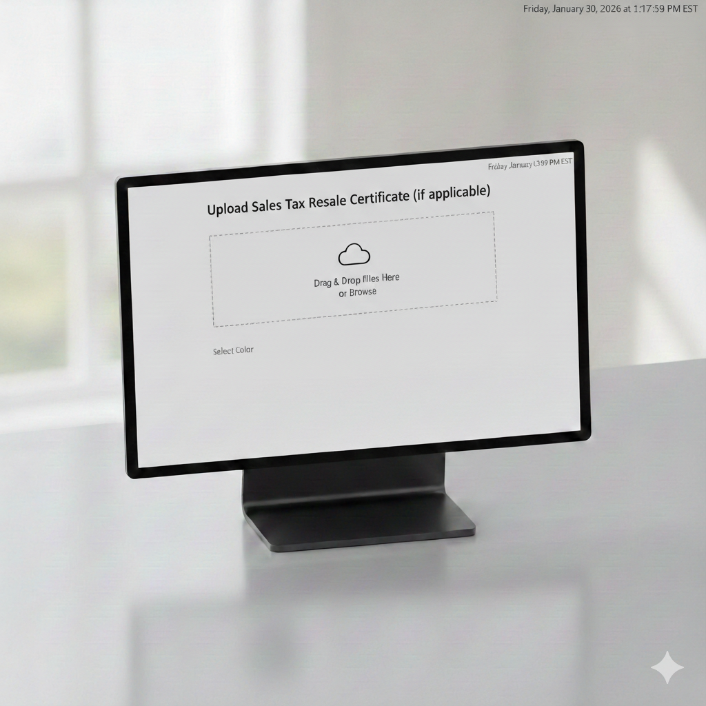 Upload Sales Tax Resale Certificate (optional)