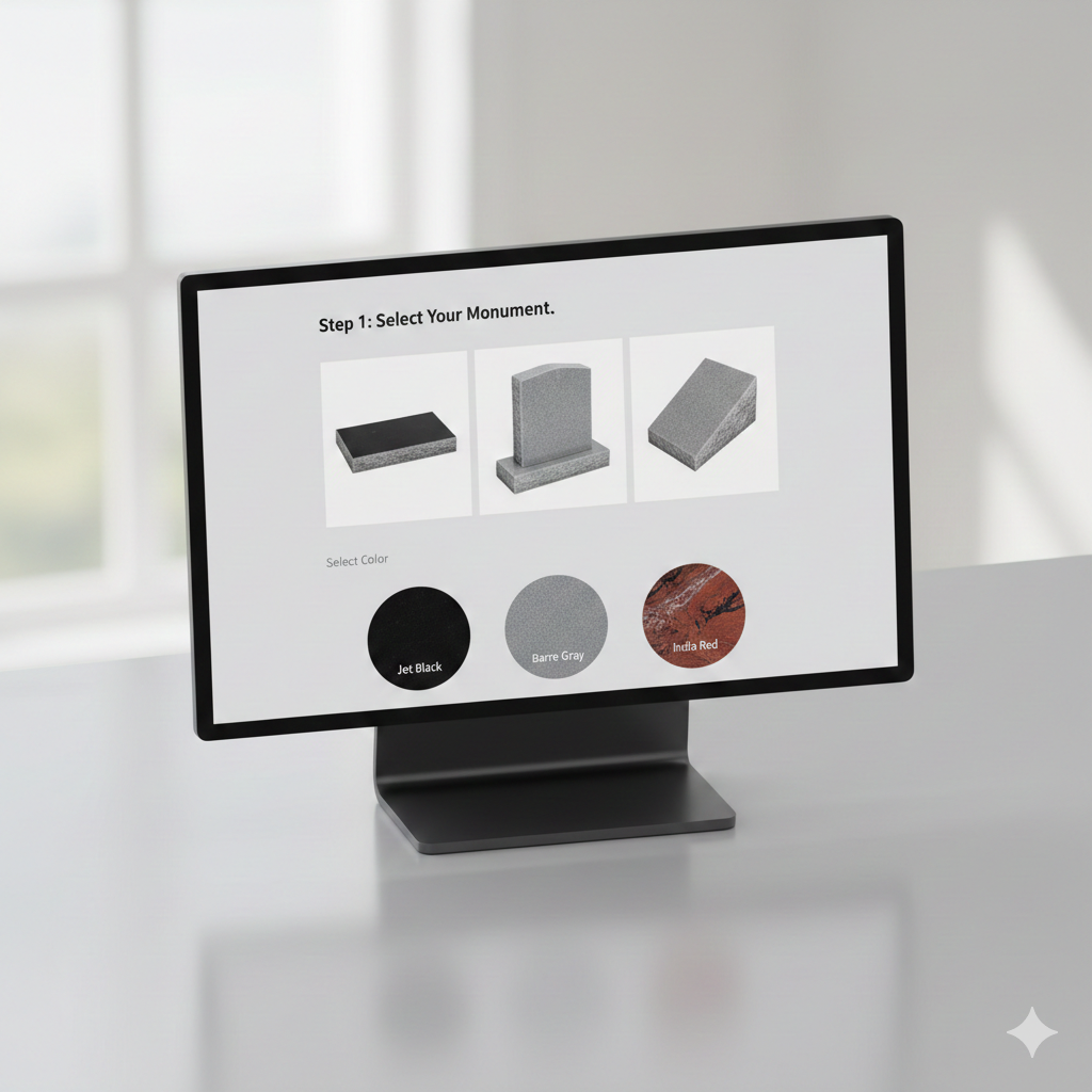 Uprights, slants, flats, bevels, bases, benches, mausoleums, columbariams, vases, and more